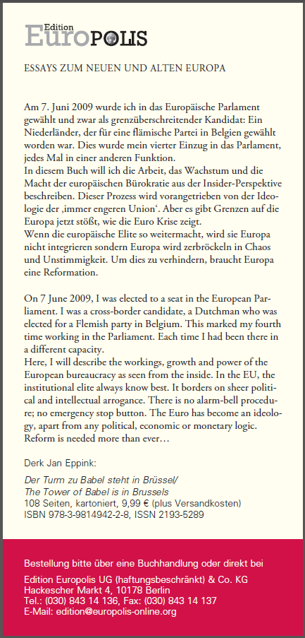 Wir laden Sie sehr herzlich ein zur Vorstellung des neuen Buchs des Europaabgeordneten Derk Jan Eppink: